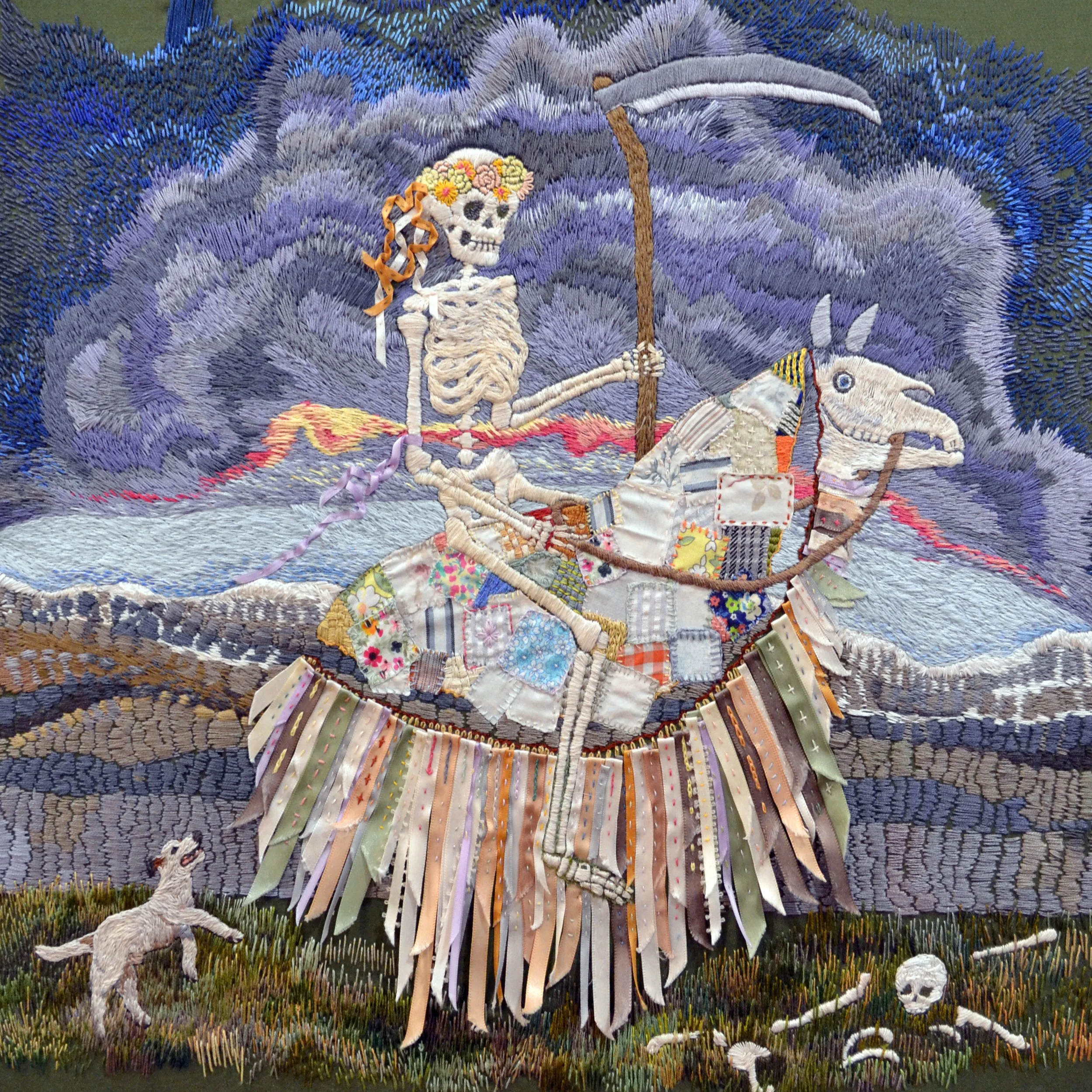 “Death” hand embroidery by Jennifer Crighton, Photographed by Jennifer Crighton